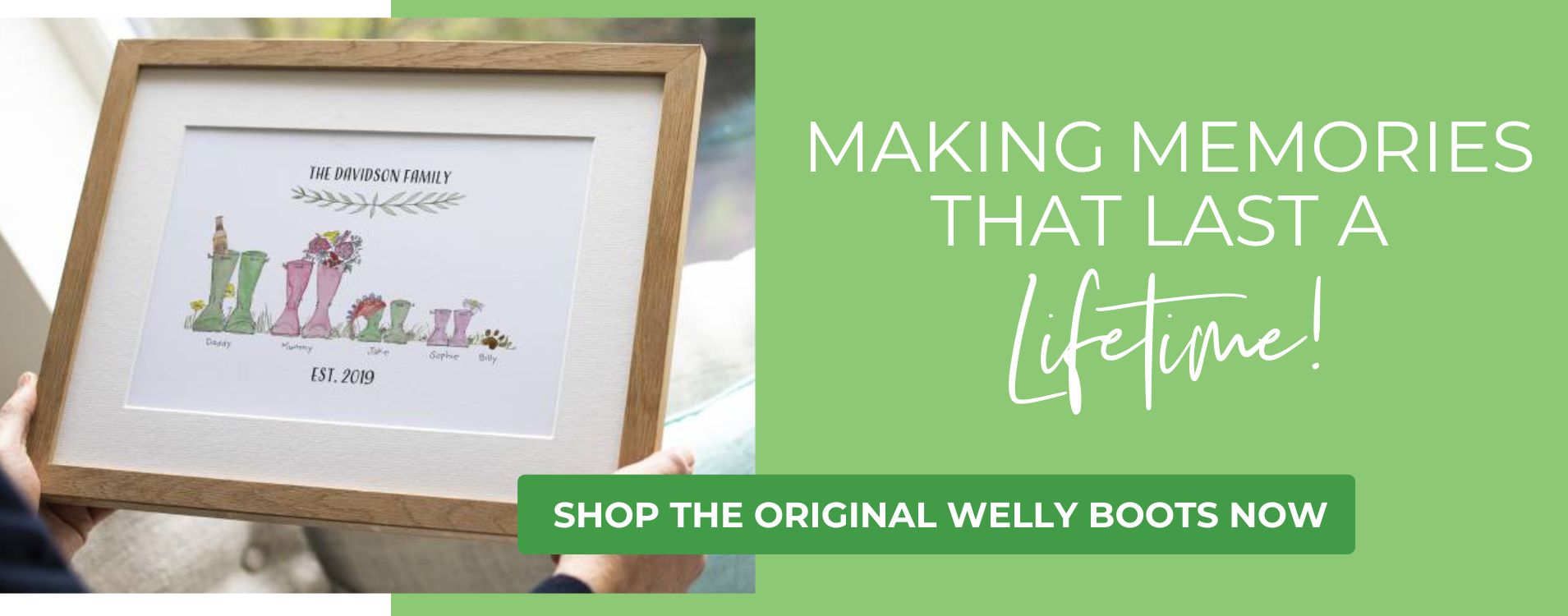 Original Welly Boot Print. If you need to find the perfect gift for someone you love, we are here to help. Shop our range of personalised prints, homewares, stationery and clothing. We promise it will bring a smile to their face or even a little happy tear to their eye. Each product is totally unique to you and your family.